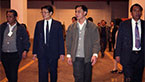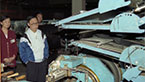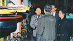 4月28日,时任国务院副总理邹家华(左一)在广东省委及广州市委、市政府主要领导的陪同下莅临广州市华南橡胶轮胎有限公司视察。